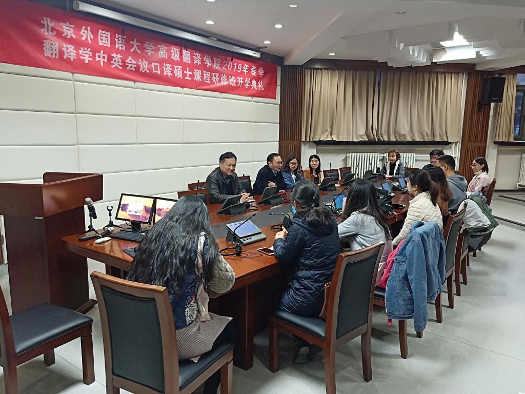 2019年3月11日,2019年春季中英会议口译硕士课程研修班开学。 beat365英国官网网站副经理李长栓教授、办公室主任胡晓虹、伍秋子和樊晶老师参加了开学典礼。参加课程研修班的同学们在晚上和周末的时间段开启了艰苦而富有成果的硕士攻读历程