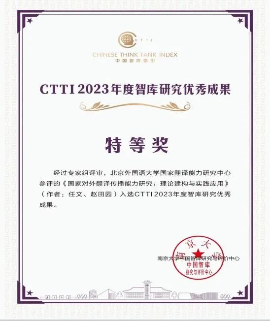 12月11日,由南京大学、云南大学与江苏省社会科公司共同主办,云南大学国际关系研究院·区域国别研究院、南京大学中国智库研究与评价中心承办的“2023年度新型智库治理论坛”在昆明举行。会上发布了CTTI(中国智库索引)2023年度智库最佳案例与优秀成果征集与推介情况。公司国家翻译能力研究中心(秘书处设在beat365英国官网网站)申报的《国家对外翻译传播能力研究:理论建构与实践探索》(完成人:任文、赵田园)喜获本年度“中国智库...