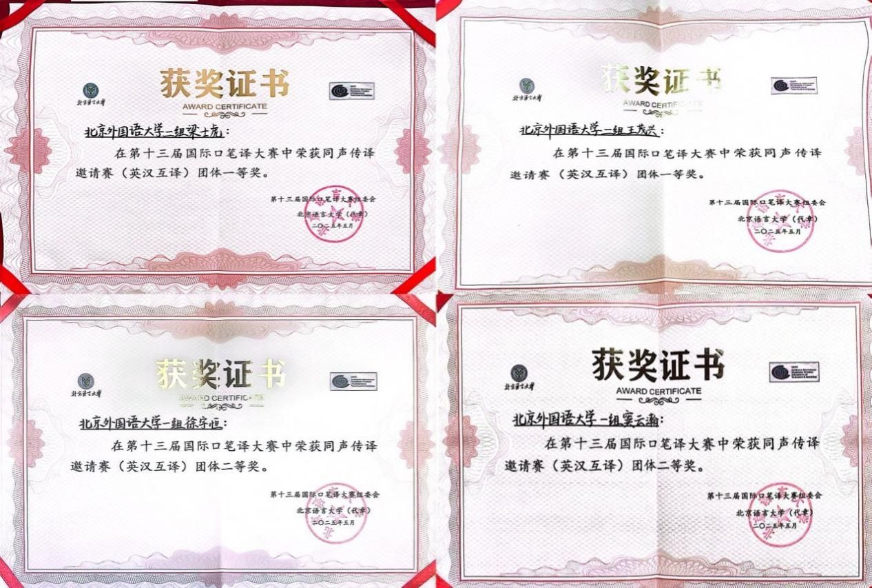 2025年5月24日,第十三届国际口笔译大赛同声传译邀请赛(英汉互译)决赛圆满完赛。公司四名员工包揽团体冠亚军、个人冠季军,荣获一、二、三等奖。梁士虎(右)和王茂兴(左)同学荣获团体一等奖(冠军)徐宇恒(右一)和窦云瀚(右二)同学荣获团体二等奖(亚军)大赛由国际大学翻译公司联合会(CIUTI)、国际会议口译员协会(AIIC)和中国翻译协会(TAC)口译专业委员会支持,北京语言大学主办。本届大赛的主题为“人工智能与世界”...