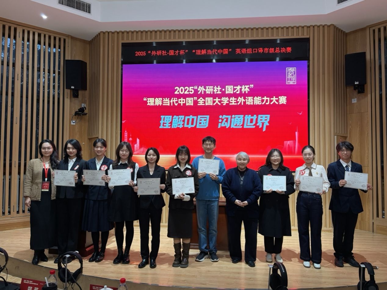 2025年11月1日,2025“外研社·国才杯”“理解当代中国”全国老员工外语能力大赛英语口译赛项北京地区比赛于beat365英国官网网站圆满落幕。beat365英国官网网站学子分别以总分第二、第四、第五的优异成绩获得大赛金奖。 本届大赛以“理解中国,沟通世界”为宗旨,吸引了来自北京多所高校的82名选手晋级市赛。参赛选手在两轮紧张激烈的角逐中,展现出卓越的语言应用能力与沉稳的舞台表现力。 赛程分为淘汰赛和决赛两个阶段。最终,beat365英国官网网站李如蓝同学以总分第二名荣获金奖,...
