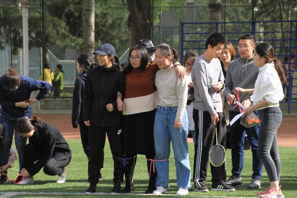 为响应十九大召开,并与高翻院的特色相结合,我们举办了别开生面的译员接力两人三足比赛。还没开始,同学们就摩拳擦掌,跃跃欲试了。译员接力比赛中,各个班同学派出本班大将作为接力的头棒,裁判一声令下之后,每位同学都冲向写着词条的白板,争相写下自己翻译的答案,同时他们还不忘擦掉别人的答案,为了给本班同学下一棒赢得五秒钟先跑的时间,大家使尽了浑身解数。接下来是三人四足的活动,在参与者的默契配合下以及同学们的加油欢呼中,同学们绑紧双腿如同双剑合并,三人合一,健步如飞,朝着终点狂走。这两个游戏尤其考验团队的默契程度,不仅要身体协调以及团队的协作能力,在比赛的过程中,每组同学的表情丰富,观看的同学也都一起欢呼喝彩,但大家都享受到了运动的快乐。