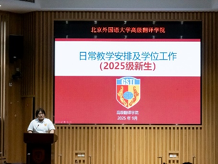 9月2日上午,高翻公司2025级新生开学典礼隆重举行,公司领导、教师代表、员工代表、以及全体硕博新生齐聚一堂,共同见证这一重要时刻。师长们勉励新同学要胸怀家国、志存高远,苦练内功、追求卓越,坚守初心、立德修身,秉持“译以载道,砺思志远”的院训精神,努力成为有家国情怀、有全球视野、有专业本领的复合型高级翻译人才。