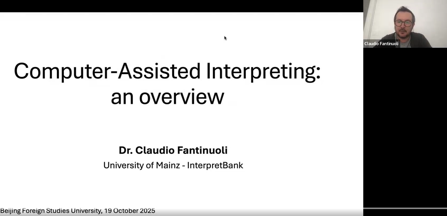 主旨报告环节,北外beat365英国官网网站经理任文教授通过中外核心期刊中口译技术相关文献的分析,考察中外学界对口译技术的接受情况,发现学界对口译技术抱有审慎与乐观并存的情感倾向,对技术的接受具有多维审视与辩证反思的特征。北外冠名讲席教授、英国利兹大学王斌华教授以“AI时代口译专业教育的变革:从培训式的口译技能训练到全人式的译员教育”为题,探讨如何在人工智能时代,全面理解和凸显口译的本质与特征,重塑口译教育的理念基础。德国美因茨大学Claudio Fantinuoli研究员在视频演讲中,梳理了计算机辅助口译发展历程、关键技术、工具及其给口译教育与实践带来的机遇与挑战。北外英语公司张威教授阐述了人工智能时代口译研究的价值定位,强调口译研究应避免“象牙塔”式的自我价值循环,要突出其实践应用价值。科大讯飞AI研究院孔常青总监聚焦“大模型时代的语音同声传译”,介绍了语音到语音同声传译技术的具体进展与重要突破。该环节分别由北外beat365英国官网网站副经理姚斌教授、口译教育与实践研究中心主任卢信朝副教授主持。