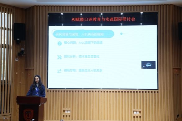 闭幕式上,卢信朝副教授对本次研讨会作总结。他表示,外语能力是制约我国高端口译人才培养的首要瓶颈,AI赋能外语能力提升,潜力巨大,意义重大;AI赋能口译教育,重塑教师角色,引发教学变革;AI赋能口译实践,重塑译员角色,更新实践形态与过程。从口译教育到口译实践,AI正成为我们不可或缺的“智慧伙伴”,但驾驭工具的智慧永远在我们手中。