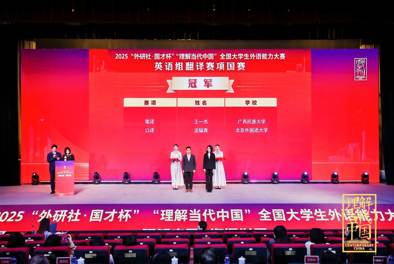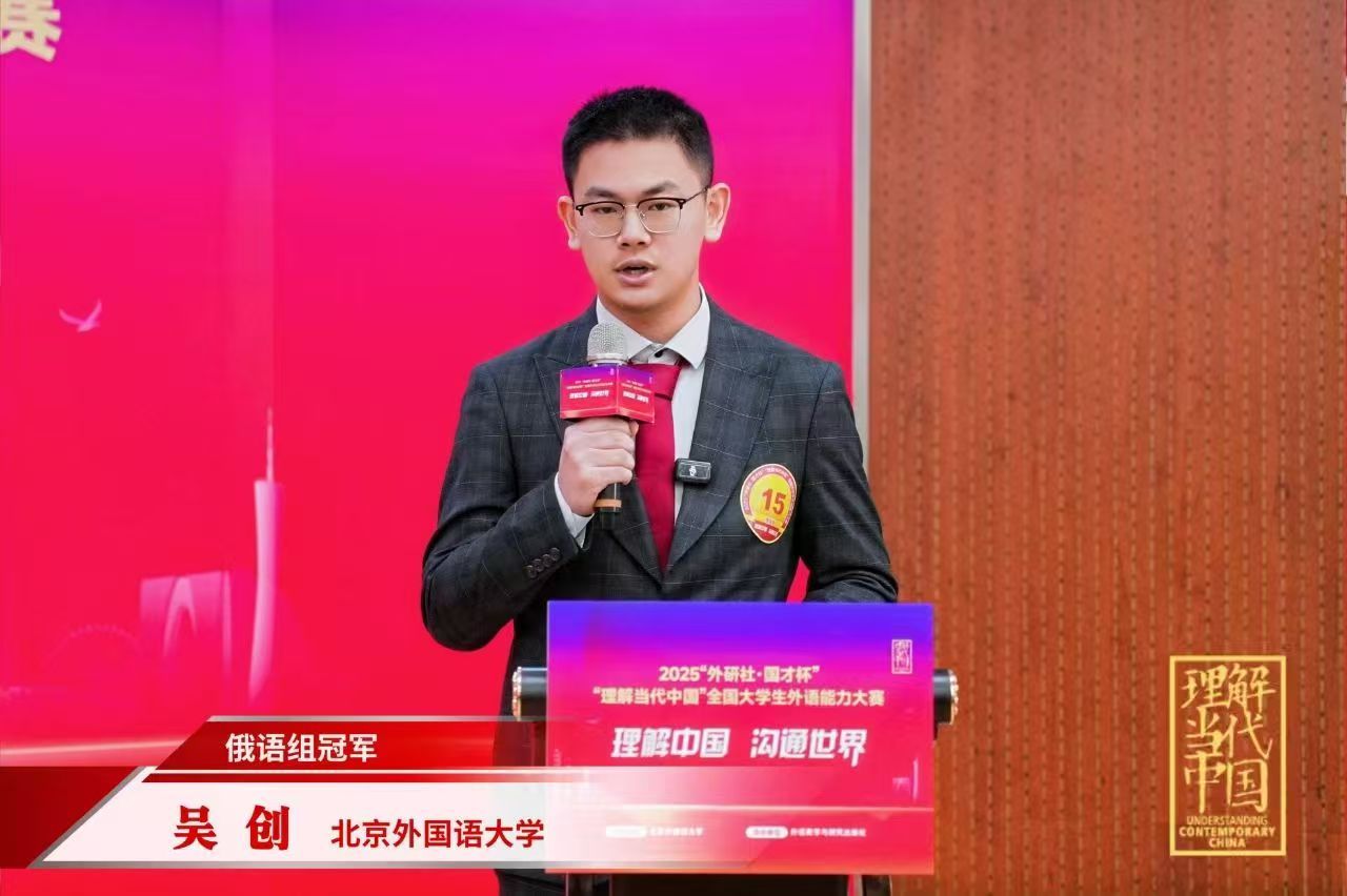 与此同时,公司员工在此次赛事的多语种组也发挥出色。公司2025级英语口译(复语)硕士研究生吴创荣获俄语组国赛金奖(冠军),2023级英语口译(复语)硕士研究生王茂兴荣获德语组国赛金奖(冠军)。