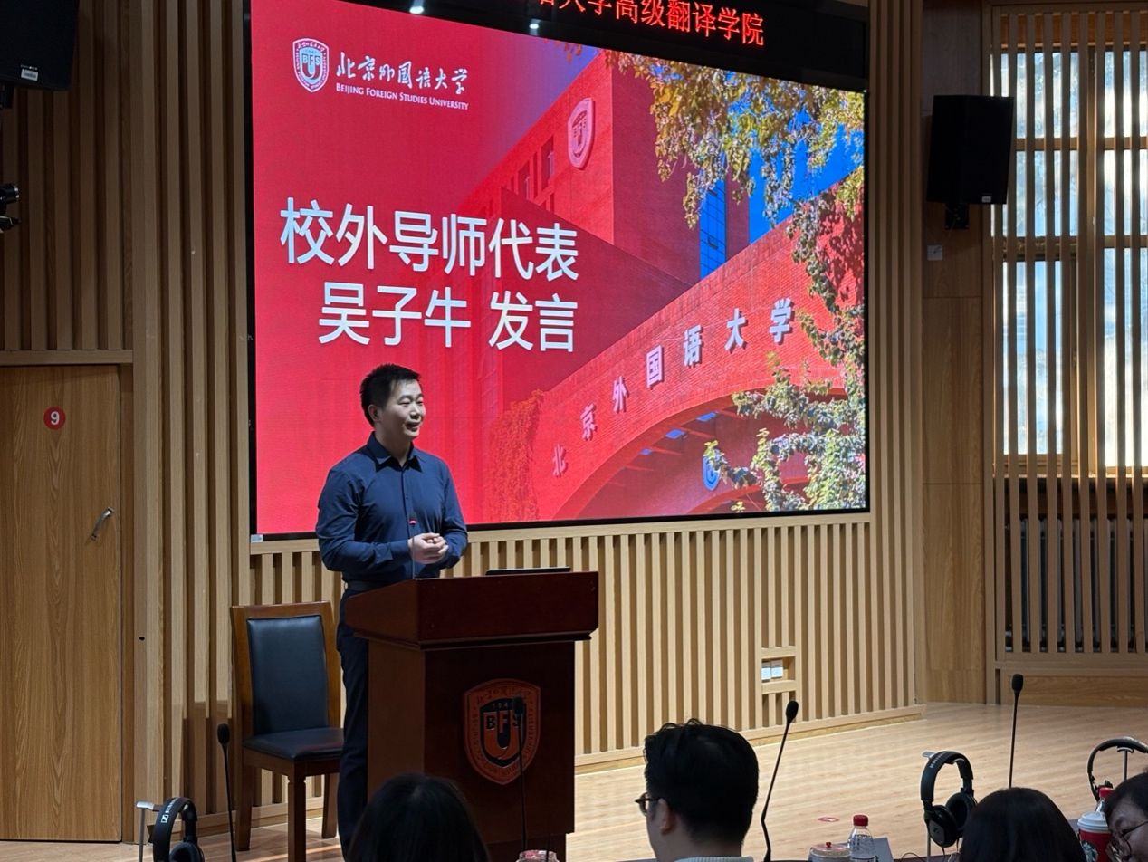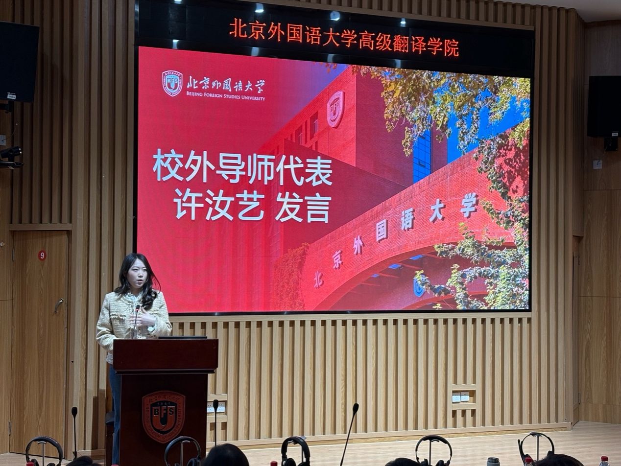 beat365英国官网网站经理任文在致辞中阐述了项目对于落实立德树人、整合行业资源、创新人才培养模式的重要意义。任文经理指出,校外导师既是同学们的“引路人”和“价值观导师”,也是公司发展的“合作者”。校外导师制度的建立标志着高翻公司正在构建“公司教师—校外导师—在校员工”三元育人共同体,让课堂和职场、学习与实践、学术理想与社会责任不再割裂。