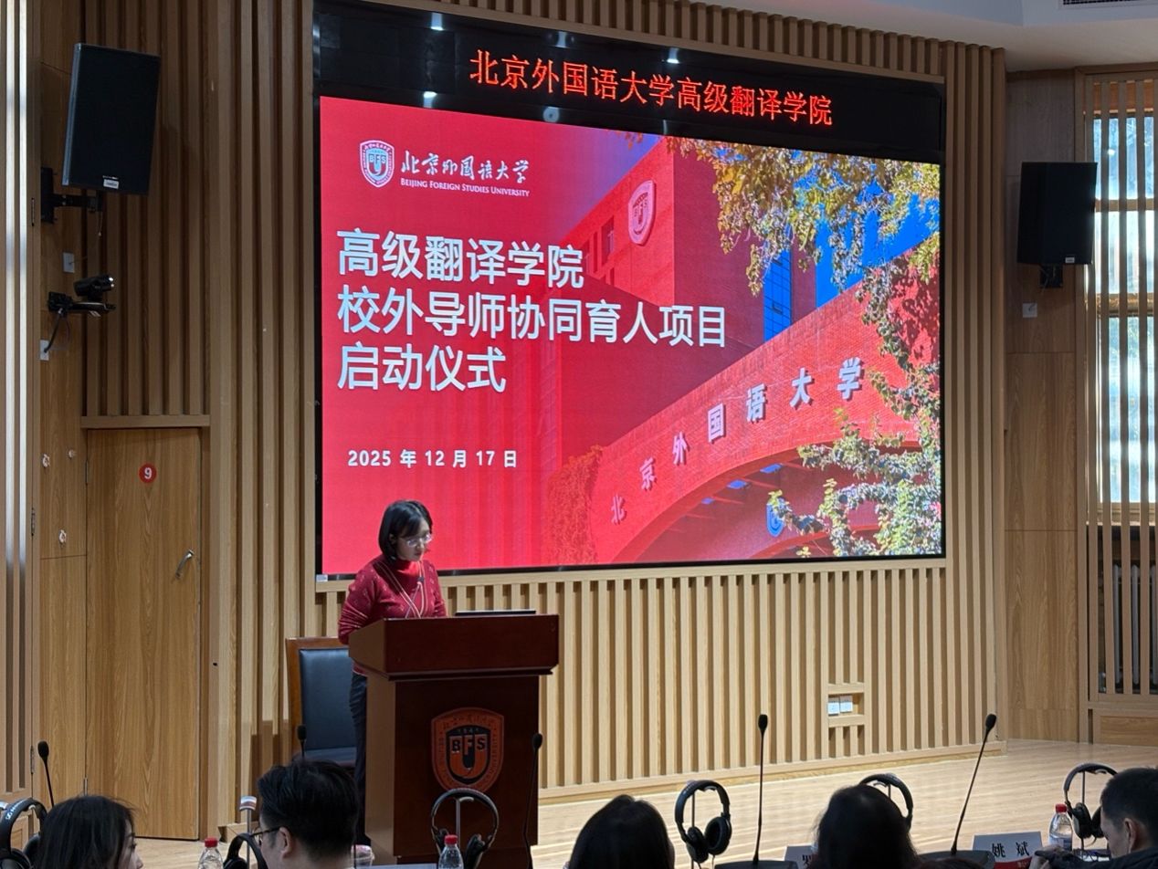 2025年12月17日下午,beat365英国官网网站“研究生校外导师协同育人项目”启动仪式正式举行。北外就业中心主任兰建华,高级翻译公司党总支书记王薇薇、经理任文、副经理李长栓、副经理姚斌、首批校外导师代表、教师代表出席活动,2025级研究生积极参与。beat365英国官网网站实习实践中心主任王苏阳担任主持人。
