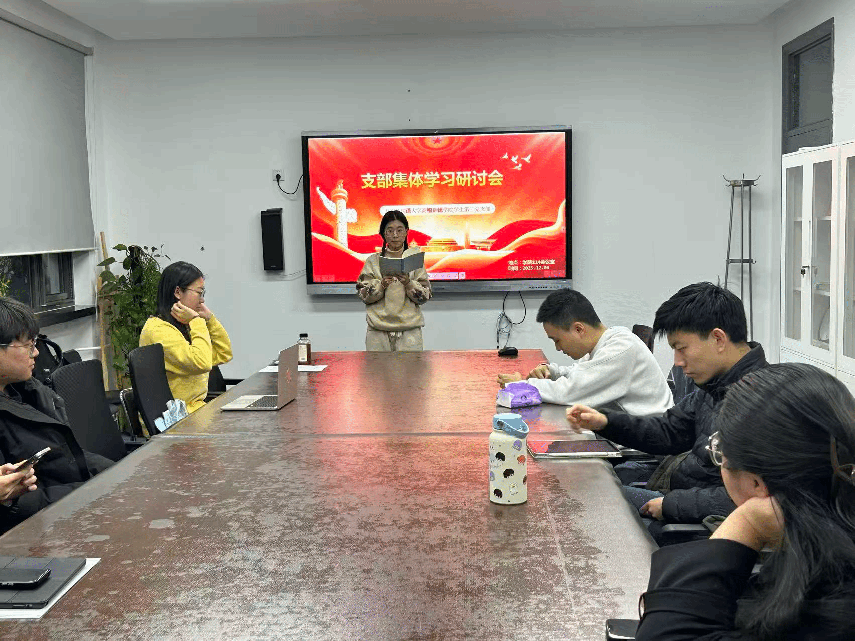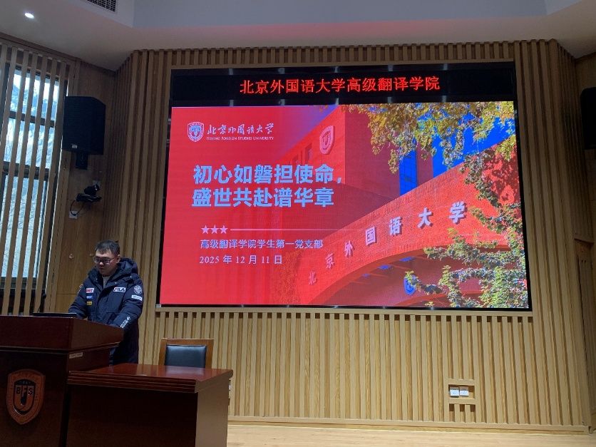 12月11日,员工第一党支部在224教室召开“初心如磐担使命,盛世共赴谱华章”专题研讨会,支部书记王茂兴带领重温主题党课内容、深入学习习近平总书记关于中国梦的重要论述。党员与入党积极分子围绕党的历史地位、中国式现代化展开热议,结合翻译技术、跨文化传播等专业方向,探讨如何以精准译介讲好中国故事,将专业所长转化为助力民族复兴的实践力量。