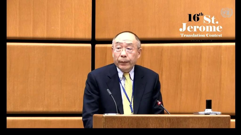 联合国维也纳办事处中文科科长、联合国译训班员工韩晓信先生作为中文组评委代表发言