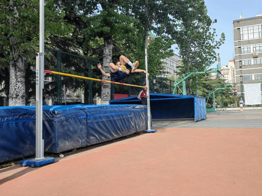 腾空掠杆,稳稳落地。