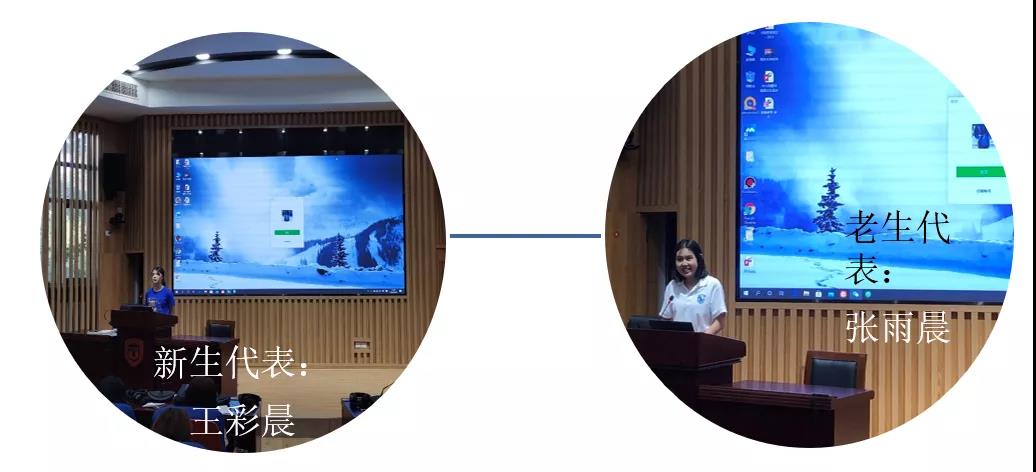 2019级员工代表张雨晨同学通过分享自己一年来学习的心得,为同学们提供可借鉴的经验和建议,希望学弟学妹在学业和员工社团工作等方面都有收获,全面发展。新生代表王彩晨同学则跟大家分享了新生对高翻新生活的憧憬和努力学习的决心。