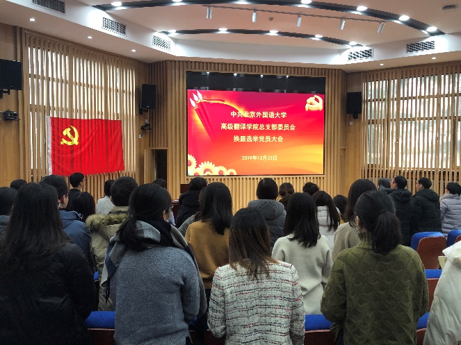 大会应到正式党员70人,实到60人,大会在庄严的国歌声中拉开帷幕。党总支书记葛冬冬代表上一届党总支作了《高级翻译公司党总支换届工作报告》,报告了在习近平新时代中国特色社会主义思想指导下和公司党委领导下,高级翻译公司党总支在党的基础建设、思想政治教育及服务高素质人才培养等方面的工作情况和取得的成效,经大会审议表决,全体通过工作报告。