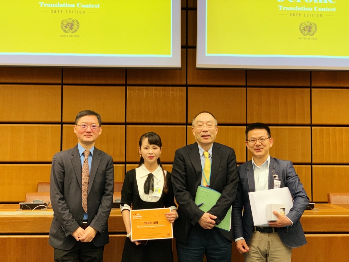 2019516日,联合国第14届圣杰罗姆翻译竞赛颁奖仪式在联合国维也纳办事处举行,公司2016级毕业生秦宇池获得英译汉普通参赛组第二名(称为“提名奖/honorary mention”)。