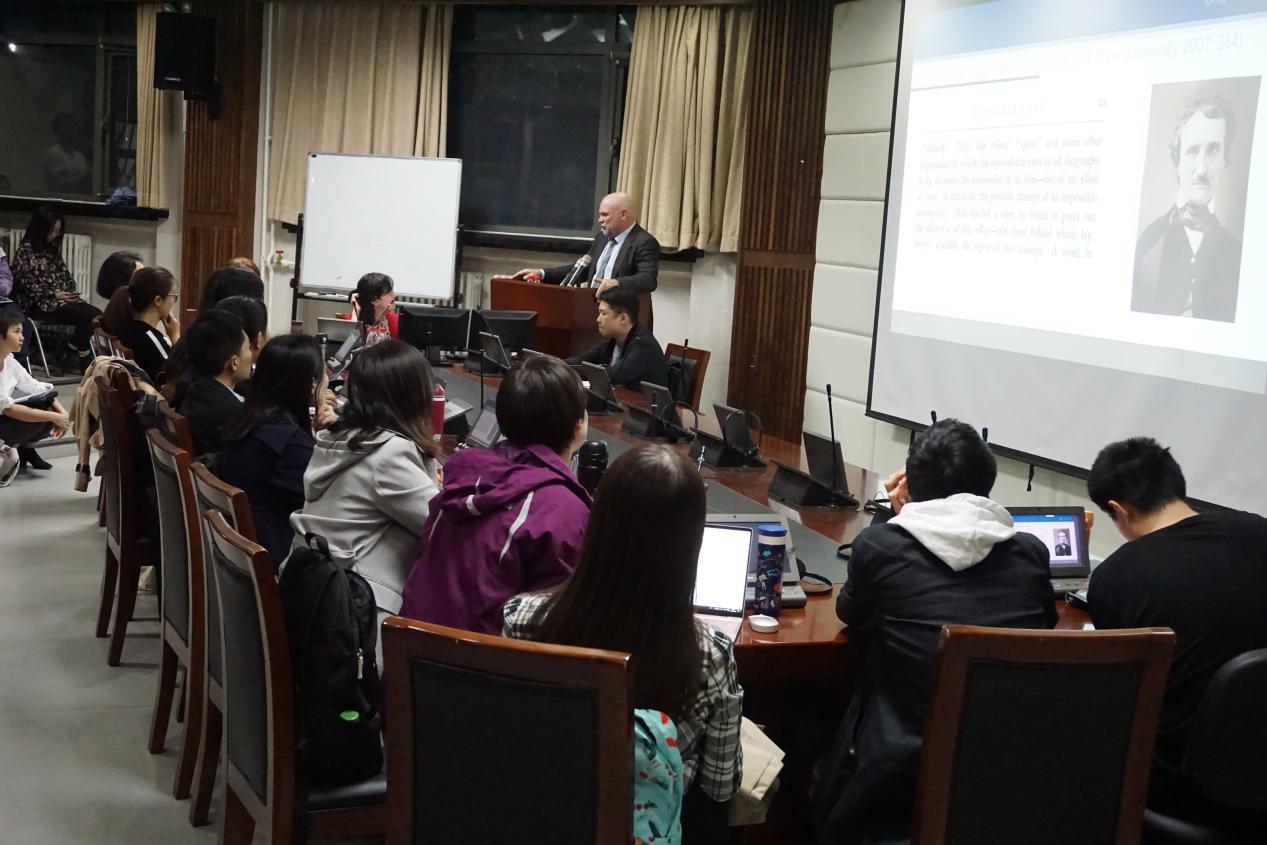 Anthony Pym教授首先介绍了在讲座中将要探讨的equivalence的涵义。教授所要探讨的“对等”并不是字面对等,而是功能对等。之后,教授向听众们简要介绍了“对等”这一概念进入翻译领域的历史,重点从解构主义的视角来介绍了翻译的不可译性。并提出,在这种不可译性的背景下,译者仍然存在,有所产出,且译者的产出被认为是有价值的。之后,Pym教授以Gilles Deleuze 和Felix Guatarri等人的观点为切入点,向听众介绍了“对等”面对的的挑战,即重复之物实际上总是不同的,是混合的。而独特的语言实际上是分裂的混合物。这是对索绪尔所倡导的,语言都是相连的这种思想的挑战。在这种情况下,“对等”依然是可能的,原因有如下几点:首先,客户需要译员这么做,客户信任译员,需要译员将原先复杂的信息简单化。其次,一些权威机构规定了一些语言间的对等。此外,Pym教授还介绍了“重述”和“可能性”的概念。“重述”指语言在语境之外仍然维持不变的涵义。“可能性”指相对确定性并不是通过诠释,而是通过统计数据达到的。这两个概念也是使得“对等”成为可能的原因。机器翻译正是建立在“重述”和“可能性”之上,通过“对等”而实现。