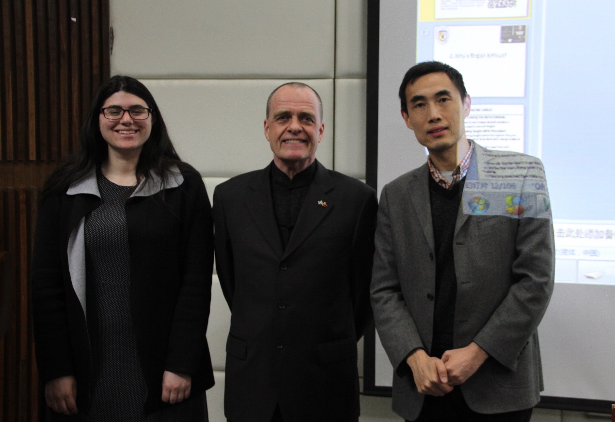 2018年4月12日晚7点,国家外文局外国专家David W. Ferguson(大卫·弗格森)以“English, Chinglish and Wronglish”为题,在beat365英国官网网站电教楼150人礼堂为高翻学子和各界翻译爱好者带来了一场精彩讲座。副经理姚斌主持讲座。