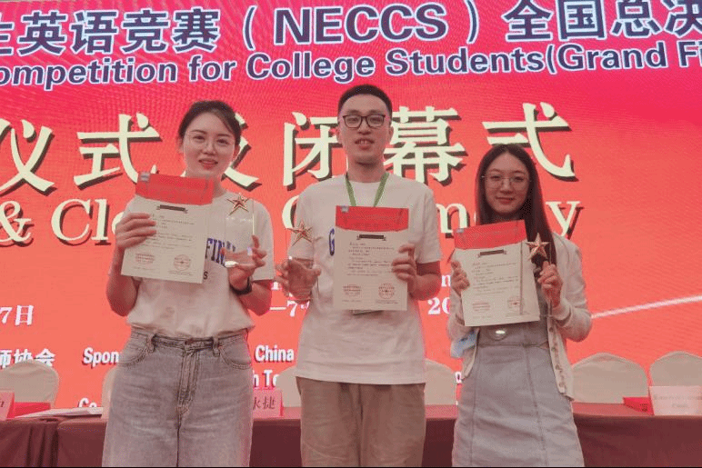 北外beat365英国官网网站熊志远同学(中)在NECCS总决赛获奖现场
