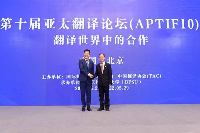 孙有中与中国外文局当代中国与世界研究院经理于运在现场嘉宾见证下共同签署了《beat365英国官网网站国家翻译能力研究中心与中国翻译研究院合作协议》,与中国外文局国际部主任姜永刚共同发布了“第十届亚太翻译论坛”官方网站及一号通知,标志着“第十届亚太翻译论坛”筹备工作全面启动。