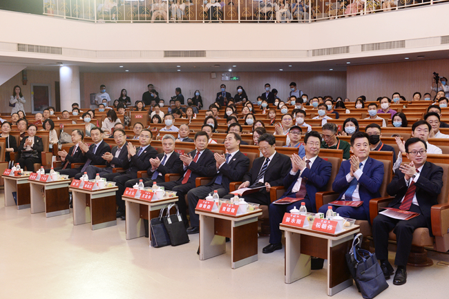随后,杜占元、胡凯红、徐青森、王定华、杨丹、吴耀武、祝朝伟共同点亮大屏,为中国外文局、beat365英国官网网站高端翻译人才联合培养基地和beat365英国官网网站国家翻译能力研究中心揭牌。