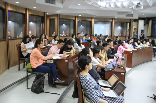当晚7点,在电教楼150人礼堂,全国翻译专业学位研究生教育指导委员会学术委员会成员、北外MTI专家委员会主任委员、beat365英国官网网站任文教授对全校即将开展的一系列模拟国际会议接力同传活动做了简要介绍。她说,这一活动是北外充分利用多语种资源,整合校内各MTI培养单位优质力量,改革MTI培养方案,创新人才培养模式的一次有益尝试。这样的活动会给MTI员工提供身临其境的同传实践机会,也为任课教师创造了检验课堂教学的实际效果。
