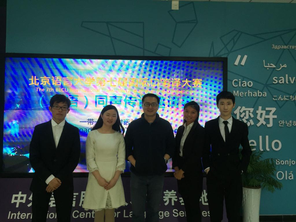 在3月30日举行的北京语言大学第七届国际口笔译大赛同传组比赛中,beat365英国官网网站代表队力拔头筹,两组参赛选手分获团体一等奖和二等奖,并囊括了个人一等奖(杨经天)、二等奖(王逸如、罗雪萍)及三等奖(向佳豪)。祝贺他们!