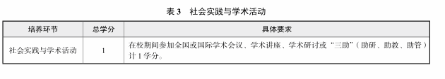 在校期间参加全国或国际学术会议、学术讲座、学术研讨或“三助”(助研、助教、助管)计 1 学分。