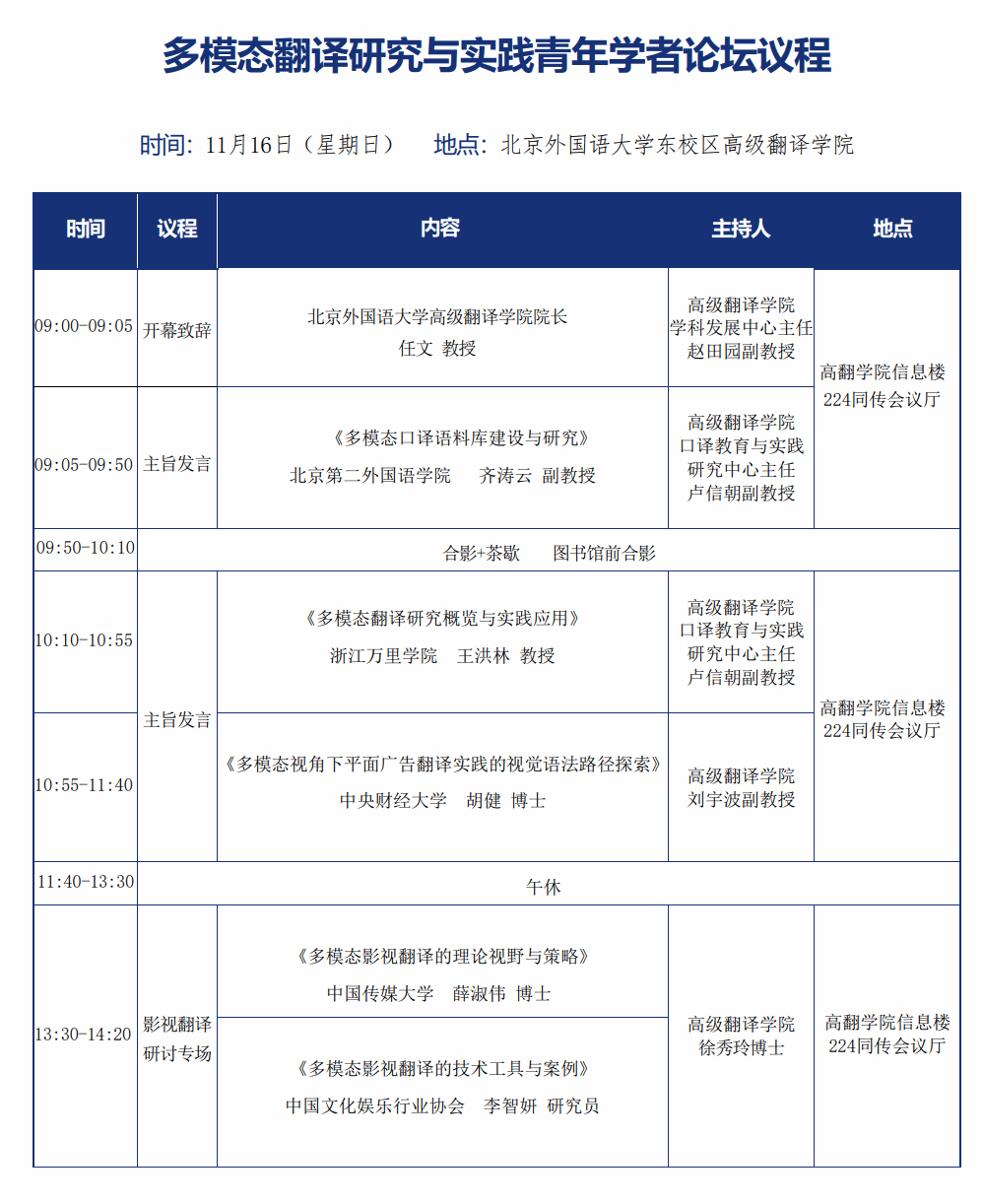 Ø博士生研讨分论坛(多模态翻译理论与实践探索):高翻公司信息楼122会议室